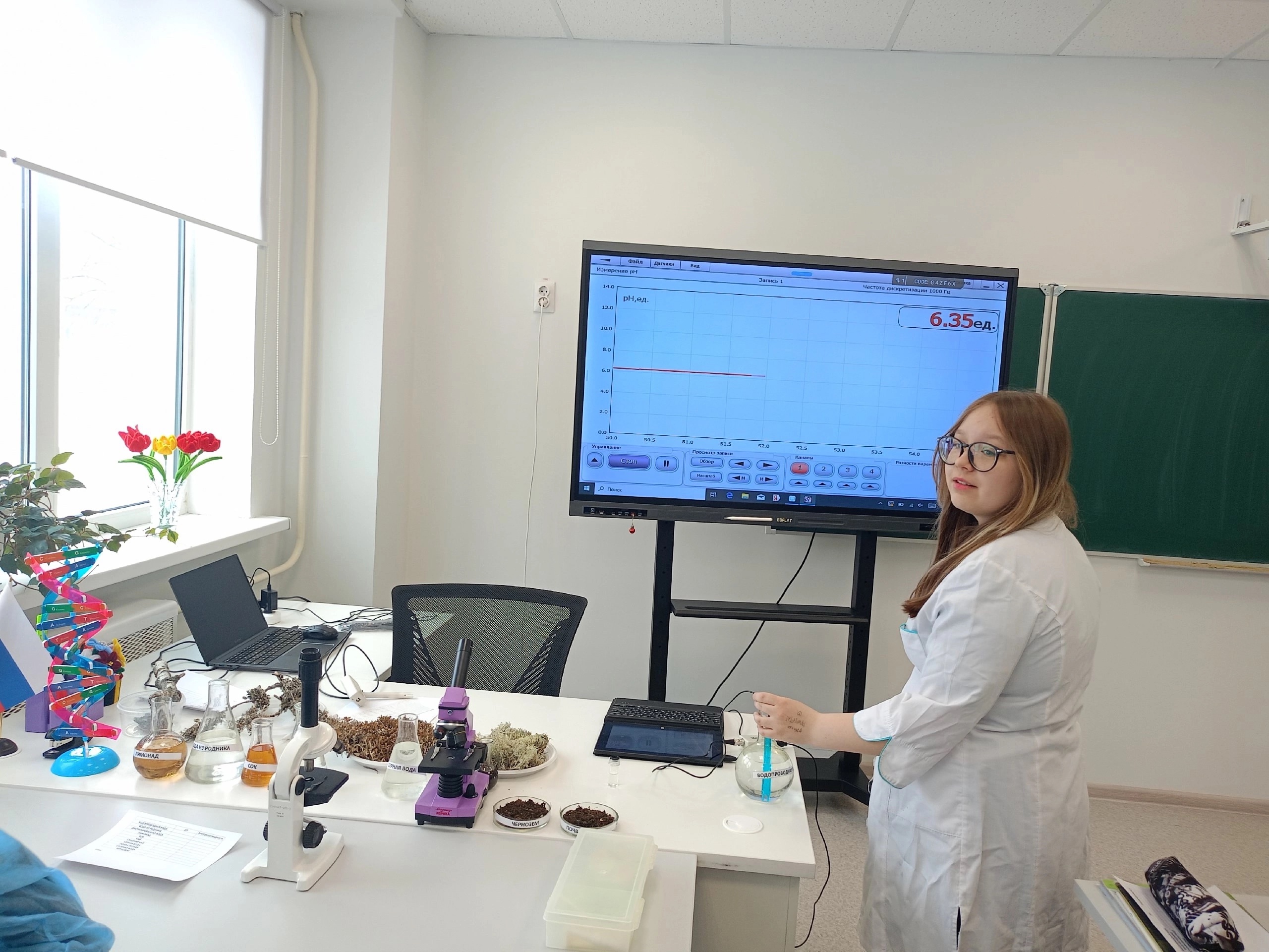 7 марта на базе Центра цифрового и гуманитарного профилей «Точка роста» под руководством учителя биологии Реутовой Людмилы Геннадьевны в 6а классе прошло занятие с использованием цифровой лаборатории по экологии «БиоСенсор: исследуем среду».